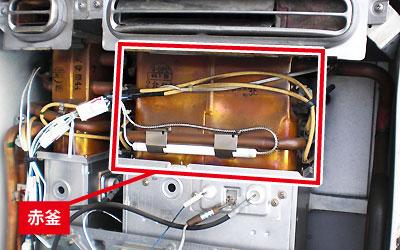 写真の様に【給湯器】の内部にある銅製の釜です。