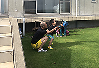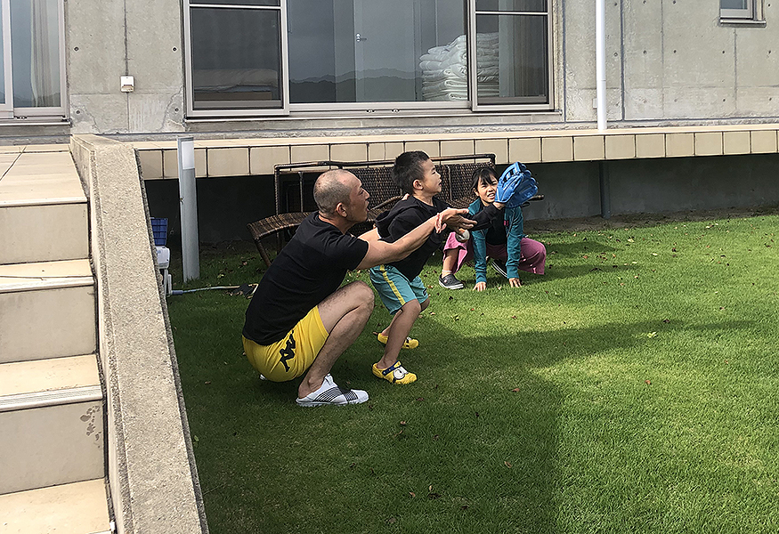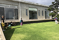 芝生広場でキャッチボール