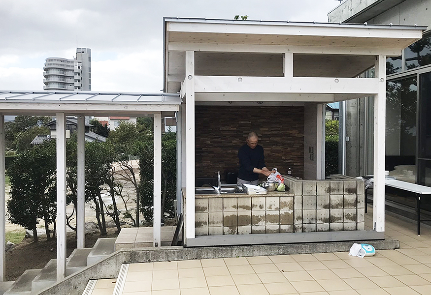 BBQの準備中