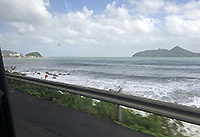 前日の台風で海は少し荒れてますが何と青空になりました。