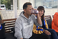 出発早々、乾杯スタート!